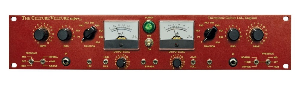 Enhancer Vulture od společnosti Thermionic Culture je studiovým nástrojem, jehož účelem je přidání lampového harmonického zkreslení do zvuku bez přítomnosti tranzistorových součástek. Verze Stereo Super 15 je dle slov výrobce zatím nejkomplexnějším modelem mezi Vulture enhancery. V jeho výbavě najdete například třípolohový přepínač Presence s pozicemi Normal, +10 dB a Overdrive, díky kterému může uživatel dosáhnout většího „crunch“ efektu s jasnějším zvukovým charakterem. Změn doznal rovněž ovladač Function, který nyní nabízí další možnosti zlepšení „kondice“ signálu včetně například speciálního dynamického zesílení středového pásma, nebo radikálněji zpracovaných harmonických. Ovladač výstupní úrovně je doplněn o útlumový prvek -10 dB. Kromě linkových symetrických vstupů a nesymetrických výstupů využívá enhancer pětici elektronek s dlouhou životností a nízkou mírou šumu.