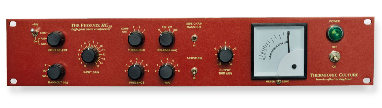 Jednokanálová verze klasického firemního kompresoru Phoenix Stereo Compressor nese označení HG 15 a využívá jemné vari-mu komprese, která se však v tomto případě při vyšší kompresní úrovni může blížit až k limitaci. HG 15 využívá většího rozsahu zesílení pro práci se širší škálou mikrofonů od lampových, přes kondenzátorové až po dynamické, dále pracuje s aktivním EQ, sedmi-polohovým prahem komprese, s šesti různými kombinacemi časů náběhu a doběhu komprese, s low-cut sidechain filtrem, vstupní elektronkou 6AQ8EH, výstupní elektronkou 12AT7/ECC81 a tranzistorovým sidechainem. Předzesilovač HG15 je ideální jako mikrofonní preamp pro zpěv, housle, dechové nástroje, kytary a další nástroje.